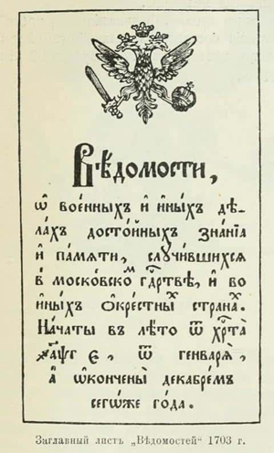 2/13 января 1703 года вышел первый номер "Ведомостей о военных и иных делах" - первой русской газеты, изданной по указу Петра I. -