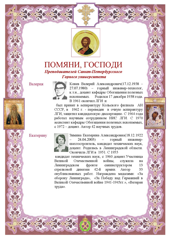 За богослужением в храме поминали профессора Горного университета, заведующего кафедрой Минералогии в 1986 – 1987 годах Сергея Александровича Руденко (15.12.1917 - 26.08.1992). В 1941 году он окончил Горный институт. Участник Великой Отечественной войны, после окончания войны возвратился в Горный институт и трудился в нем всю жизнь. С. А. Руденко являлся Почетным член Российского минералогического общества, принимал участие в организации работы педагогической комиссии Минералогического общества при РАН. Награжден орденами Отечественной войны III степени и «Красной Звезды».