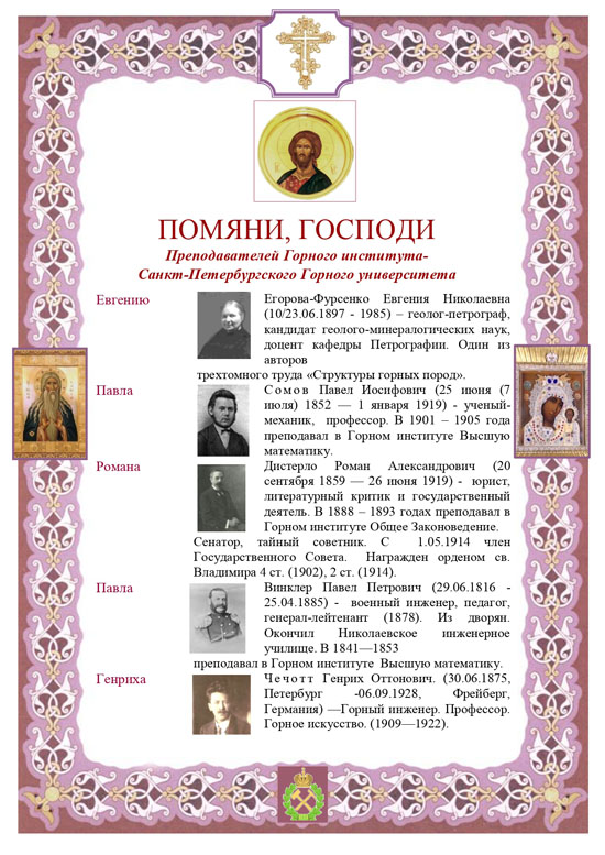 Со времени основания храма в 1805 году сложилась традиция – назначать в храм учебного заведения грамотных и высокообразованных священнослужителей, способных утвердить в вере воспитанников Горного корпуса и передать им знания и опыт.