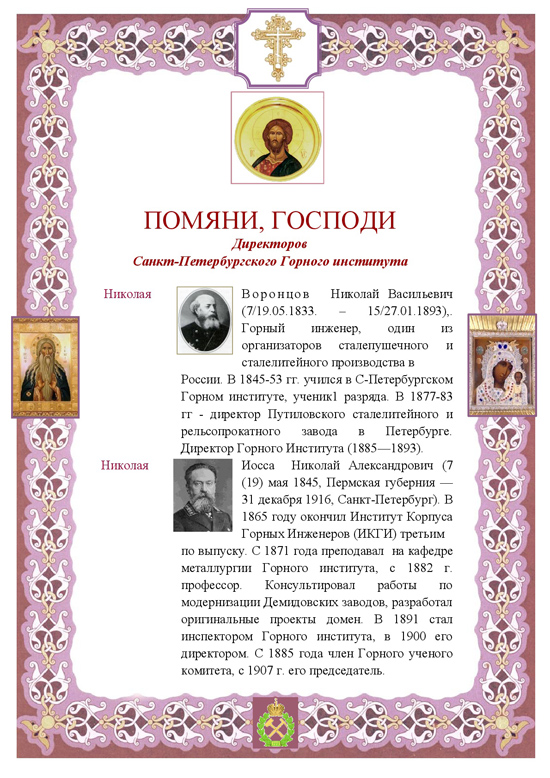 4 мая, в среду Светлой Седмицы настоятель протоиерей Владимир Сорокин совершил праздничные Пасхальные богослужения в храме прп. Макария Египетского в Горном университете и поздравил всех с праздником Светлого Христова Воскресения. Особо были помянуты те начальствующие, учащие и учащиеся Горного университета, чьи дни памяти приходятся на первые дни мая. Например, 7 мая 1833 года родился Николай Васильевич Воронцов - горный инженер, один из организаторов сталепушечного и сталелитейного производства в России, директор Горного Института в 1885—1893г.г.; 7 мая 1845 года родился Николай Александрович Иосса, с 1891 г. инспектор Горного института, в 1900 - директор. 8 мая 1933 года родился Игорь Абрамович Одесский, доктор геолого-минералогических наук, профессор, академик МАНЭБ по секции экология, редактор стенной газеты Геологоразведочного факультета «Геолог» и институтской газеты «Горняцкая правда».